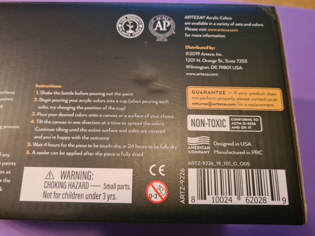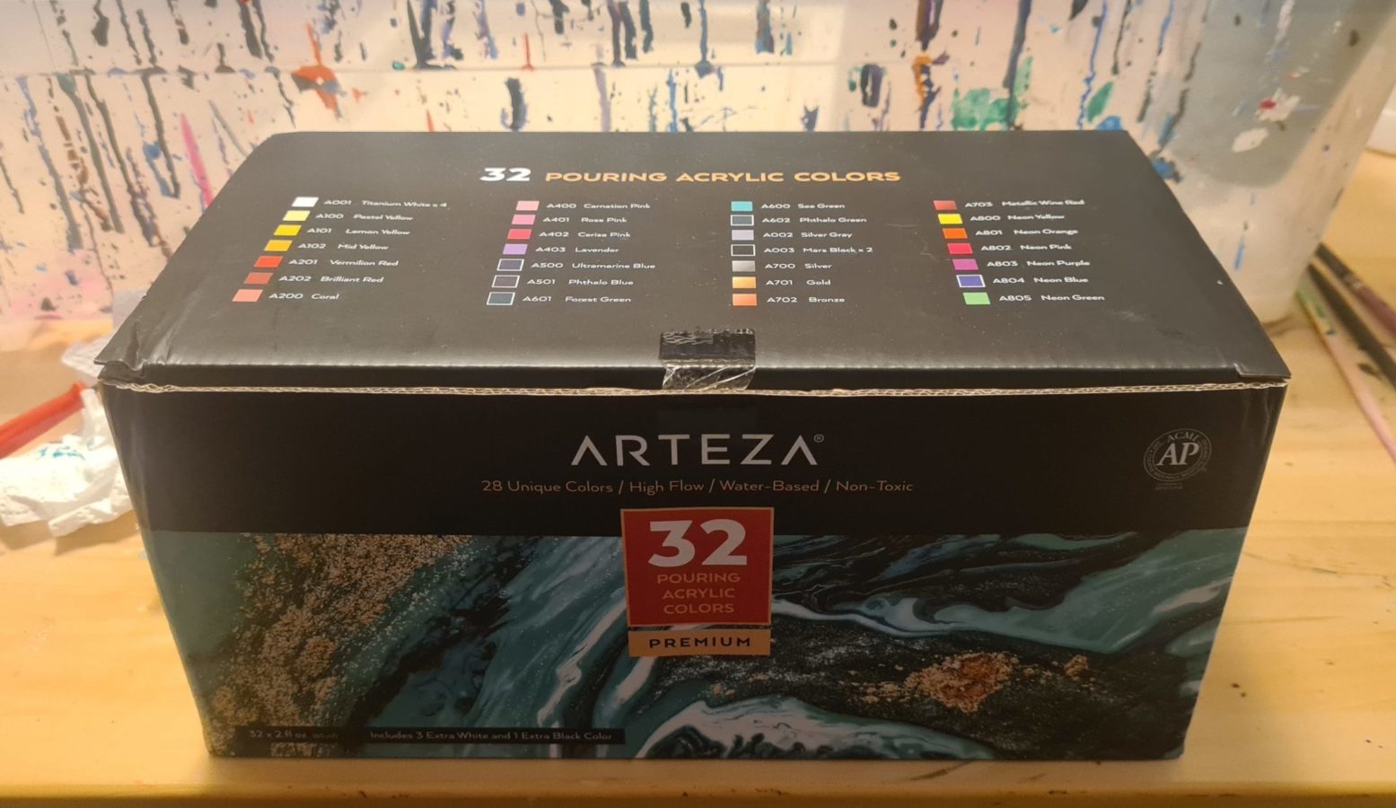 Bei meinem Sieb – Pour habe ich Arteza Farben genutzt. Ich werde Dir gerne schildern, was mir bei der Arbeit mit der Acrylfarbe aufgefallen ist.