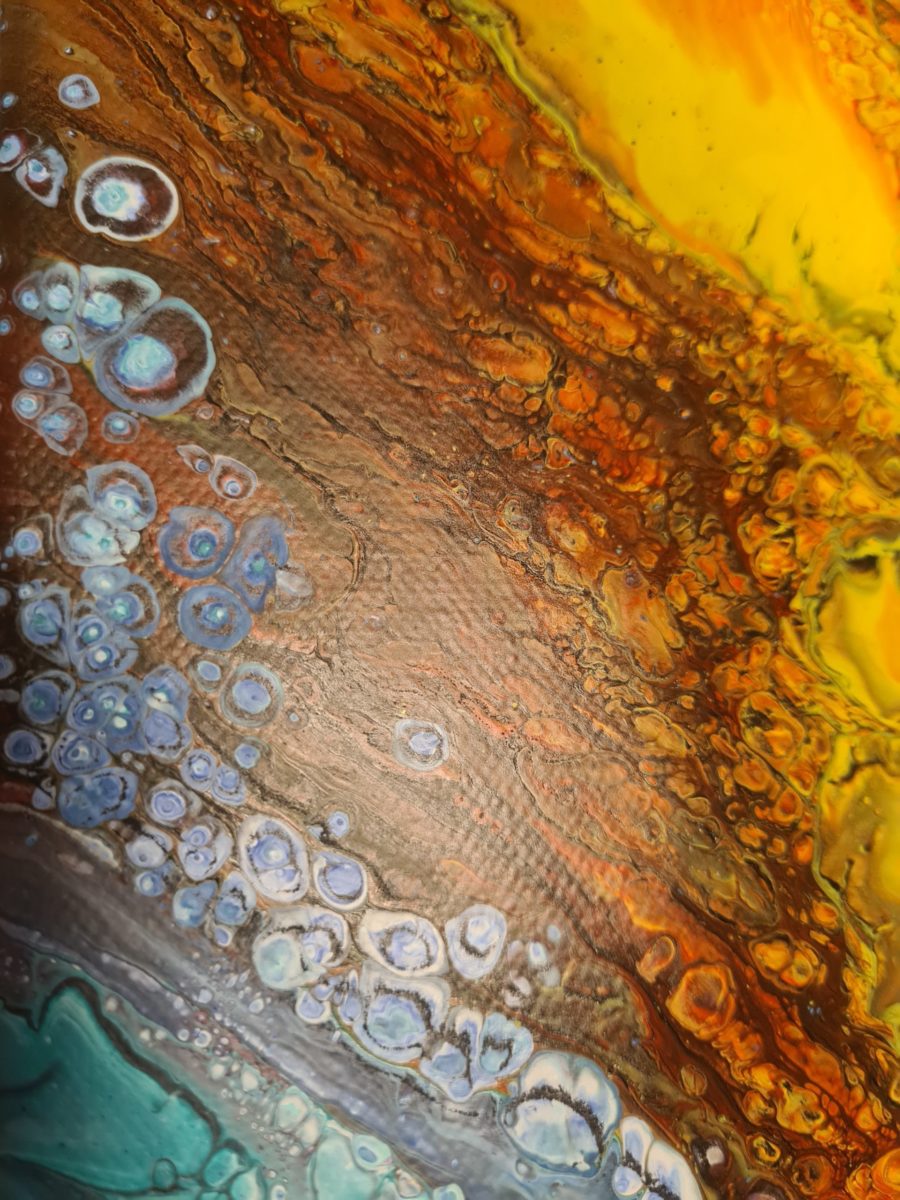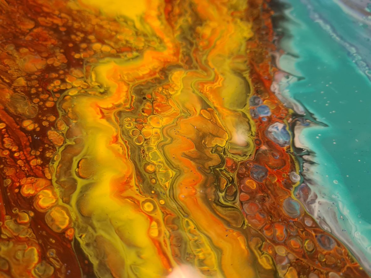 Habe ich Dir zu viel versprochen? Ein bißchen chaotischer Pour, aber er bringt unheimlich Spaß und macht einzigartige Effekte, die Du selbst mit der gleichen Farbkombination so nicht wieder hinbekommen wirst. Welche Farben würdest Du für einen Infinity Pour nutzen und hast Du ihn schon einmal probiert? Erzähl mir von Deinen Erfahrungen und hinterlasse einfach einen Kommentar oder gar ein Bild. Happy Pouring und bis zum nächsten Pour!