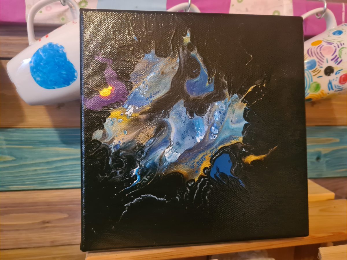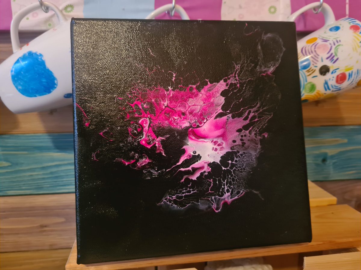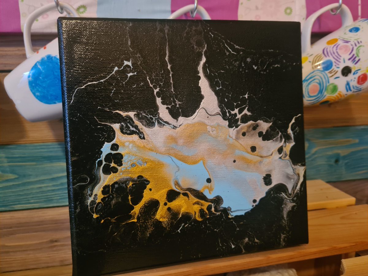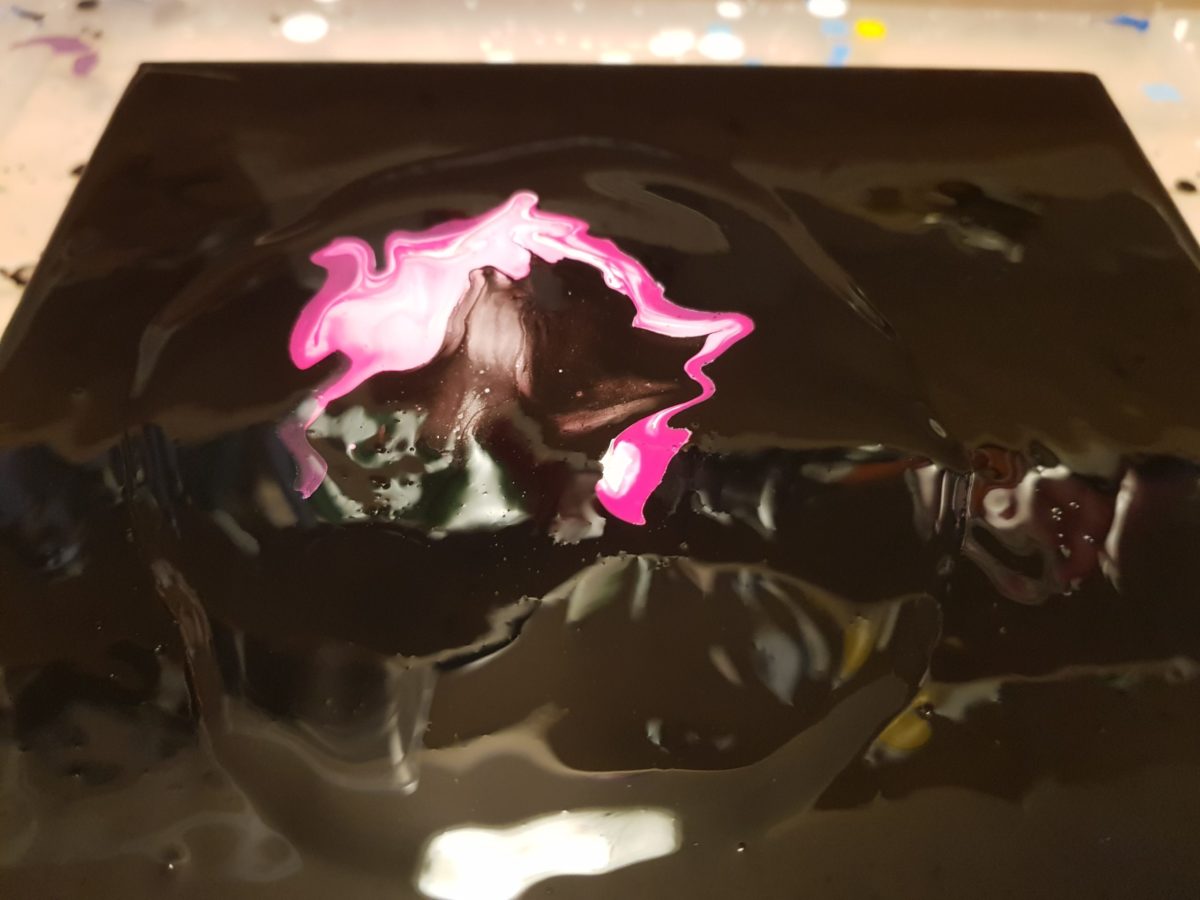 Der Weg hierhin war lang, aber keinesfalls von wirklichen Problemen gezeichnet. Ja, auch auf die Gefahr hin mich zu wiederholen Artina schwarz ist keine perfekte Grundierungsfarbe für einen Dutch Pour. Aber meine Quetschflasche ist nun auch alle und ich kann ggf. eine andere Farbe als Grundierung wählen. Ein schönes preussisch Blau wäre toll oder ein dunkles Violett kann ich mir für eine Miniserie ebenfallls gut vorstellen.