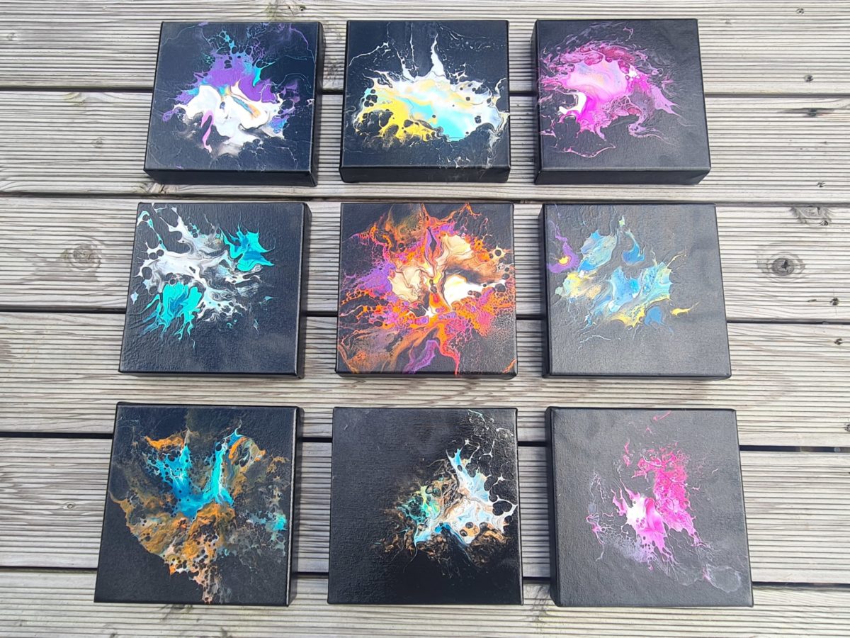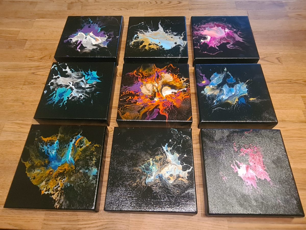 - Alle Bilder erhielten eine schwarze Grundierung mit Artina Acrylfarbe