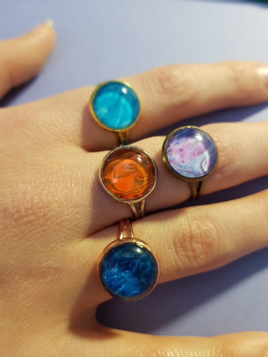 1. Hallo,ich bin vor kurzem auch mit der Herstellung von Acryl Pouring /Corbochon Schmuckanhänger angefangen.Meine Fragen wären da :